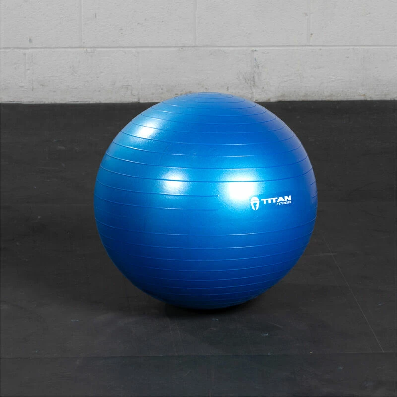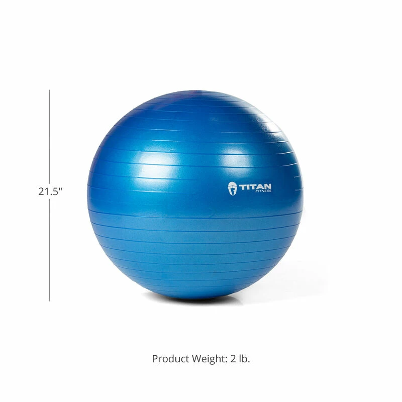 The Yoga Stability Exercise Ball by Titan Fitness® is just what you need to strengthen and tone your abs, core, and back. Sit on it at work or at home to improve your posture and strengthen your legs. Use it when you exercise at home or the gym for a variety of balance, strength, and flexibility moves, either on the floor or while standing. Groundwork exercises include Swiss ball crunches, plank holds, push-ups, and reverse extensions. Standing exercises include squats, lunges, hip circles, and more! This blue 55 cm ball is suitable for people between 4 feet 11-inches and 5 feet 4-inches tall; check out our 65 cm ball if you are between 5 feet 5-inches and 5 feet 11-inches. Pregnant women will also enjoy this as it can improve flexibility and relieve tightness.