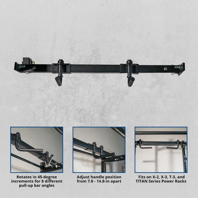 SPACE SAVING: Attach anywhere inside of the rack for increased space efficiency. These handles can be moved closer or further away from each other for wide/narrow grip variations. The Pull-Up Bar supports athlete inside of the X-2, X-3, T-3, and TITAN Series Power Racks.