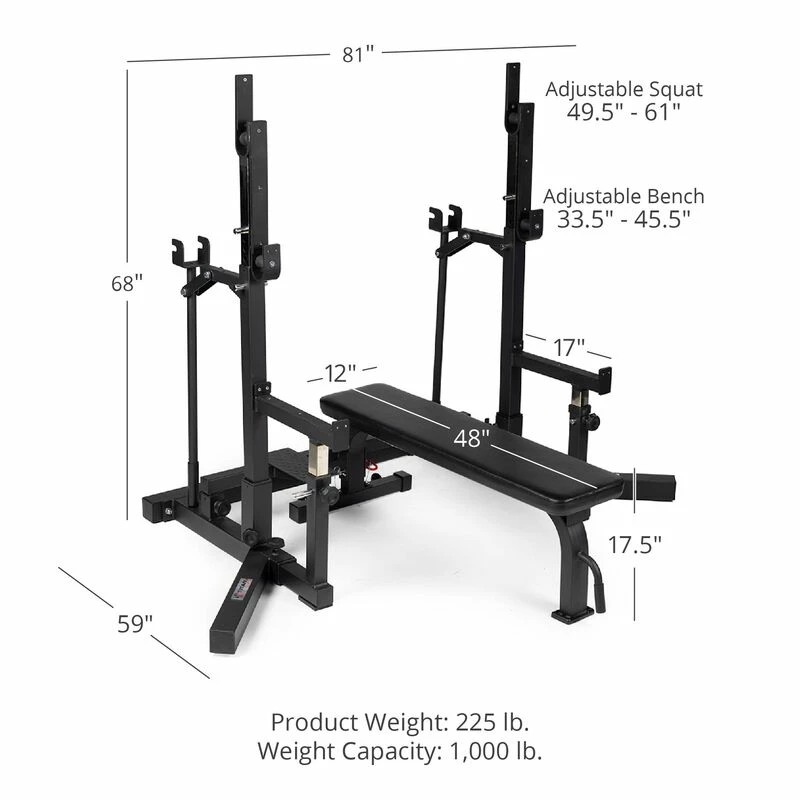 | Adjustable Bench Press Height | 33.5-in. – 45.5-in. |