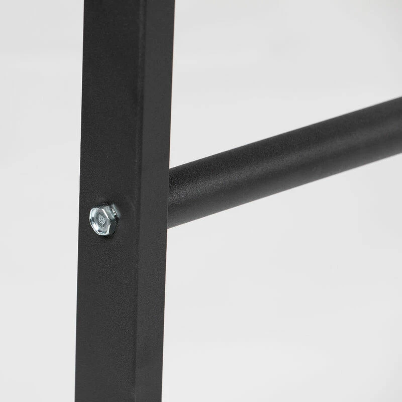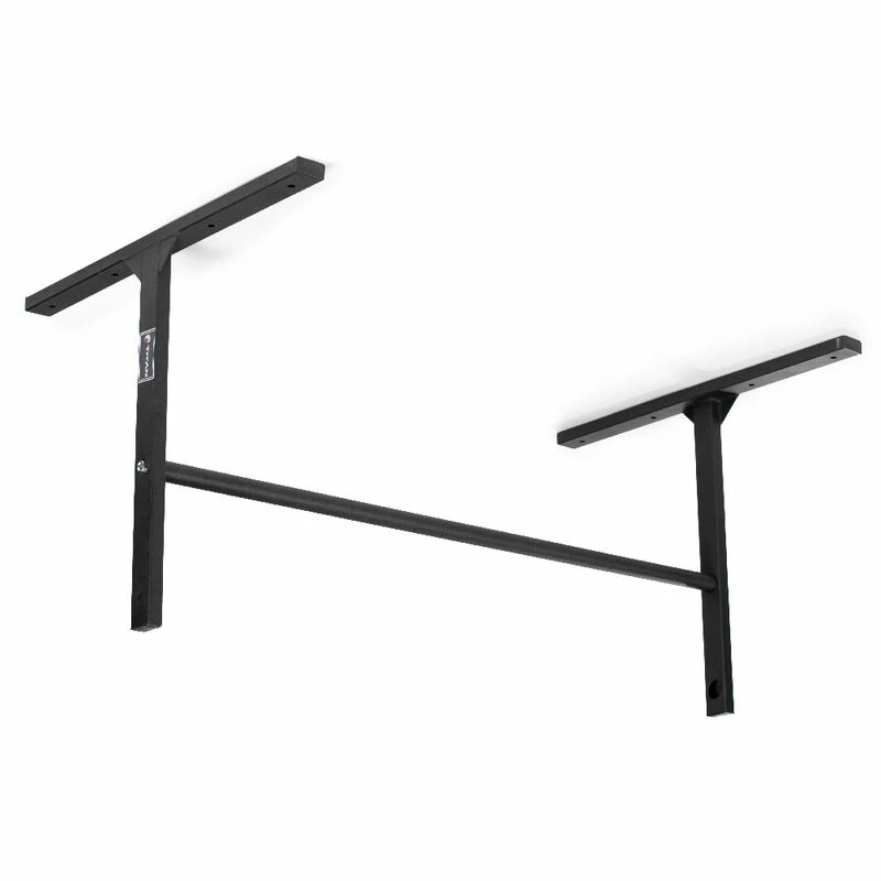 The Medium Pull-Up Bar is designed as an adjustable stud-mounted 9 FT max ceiling mount or wall mount. Crafted from 14-gauge steel with the pull-up bar slots measuring at either 15-inches or 23-inches from the mounting point, so you can easily adjust the chin-up/pull-up bar to the appropriate height for your needs. Perform exercises to strengthen your back, upper body, and lateral muscles. Rated at a 350-pound weight capacity, this durable wall-mounted pull-up bar is a great strength accessory to add to an existing gym or instantly turn a room into one.