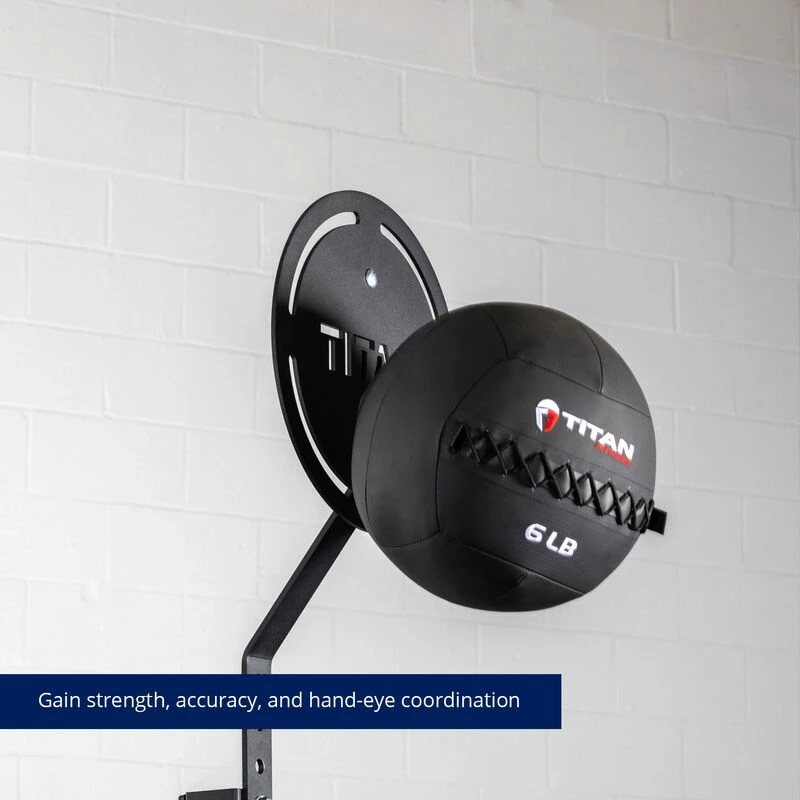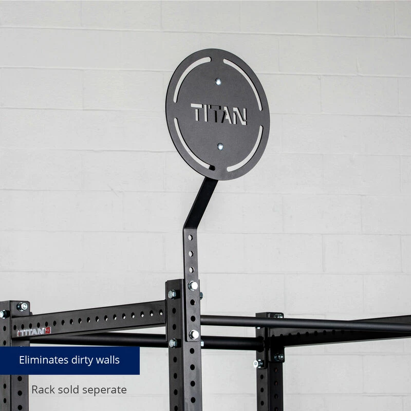 The Rack Mounted Wall Ball Target by Titan Fitness® is a bolt-together design constructed from solid steel with a laser-cut crosshair design and TITAN logo for improved aim. Measuring 16-inches in diameter, this durable 0.25-inch-thick steel target installs easily on your T-3 or X-3 Series Power Rack upright. The plate can be mounted vertically or horizontally. When mounted at its highest setting, the target’s center will sit 18-inches above the top of the upright (at highest mounting, target requires 24-inch clearance above the top of the rack). Eliminate scuffed paint or broken drywall/sheetrock with the Rack Mounted Wall Ball Target, gain strength, accuracy, and hand-eye coordination on your wall ball shots.