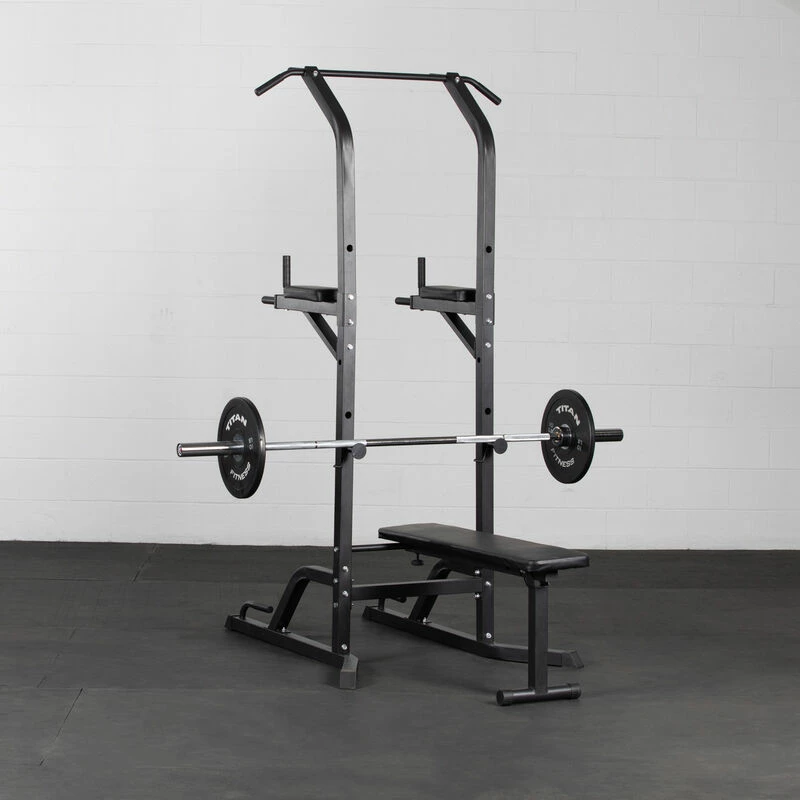 The Power Tower Bench from Titan Fitness® combines our classic Power Tower with several useful home gym add-ons, featuring five workout stations to develop the muscles in your chest, shoulders, and biceps. This space-saving design is perfect for maximizing your home gym potential.