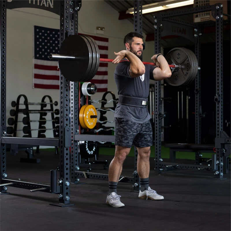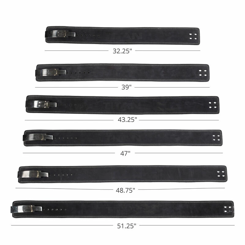 The 10mm Lever Belts utilize the lock-in lever design in place of the single prong buckle like our MAXXUM Lifting Belts. These black laminated leather Powerlifting belts are durable, four-inches-wide, providing firm support through heavy lifts. Crafted with seven adjustable holes spaced 1-inch apart, featuring a stainless-steel lock-in lever and an embossed TITAN logo printed on the back of the belt. Clean design, secure fit, these Lever Belts are built to last through every Deadlift, Squat, or Bent-Over Rows you perform in it.