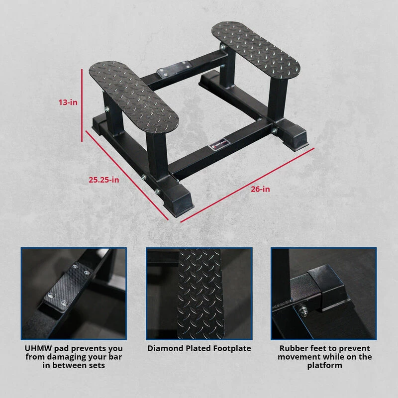 With Titan’s Rowing Platform athletes can add some versatility to their workouts and exponentially deepen the range of motion similar to that of T-rows but at a much lower price point! Angled diamond plated footplates provide comfort and stability during the exercise to focus on getting that deep stretch that this platform was built for!Â