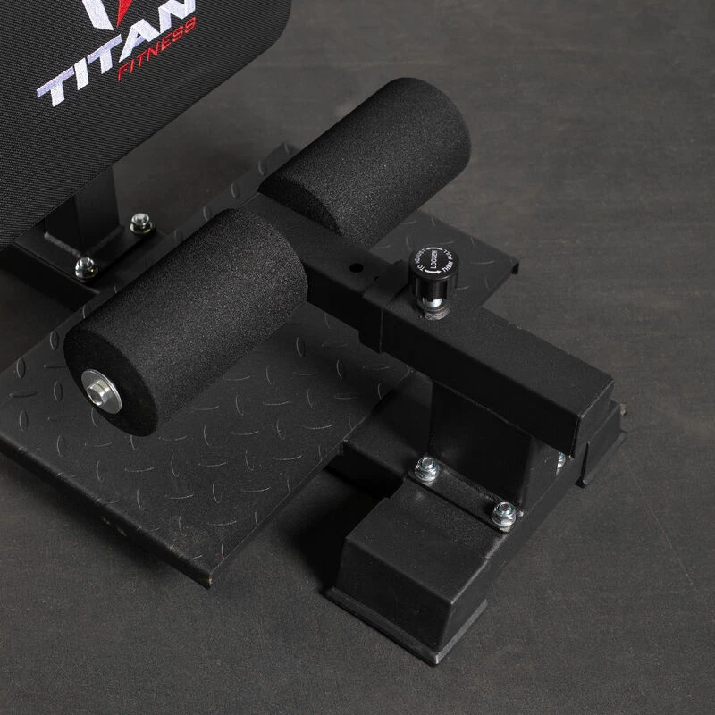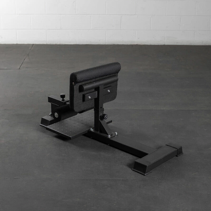 End your leg day with a burning set of intense quad conditioning with the Sissy Squat Machine. Also known as Matrix Squats, this machine allows you to perform high rep bodyweight squats or increase the difficulty by holding a kettlebell across your chest or wrapping a band behind your head. This lower body specialty machine has four adjustable foot roller positions, from 5 to 8-inches, and five adjustable calf pad positions, from 16 to 20-inches, for comfort and safety. Fully equipped with a diamond plated footplate, high-quality padding, adjustable calf and footpads, and a low footprint. Unlike other machines, this strength and toning implementation requires no weights. It works well to target all four quadriceps and glute muscles, strengthen the knee and hip joints, and train your core for balance and stabilization.