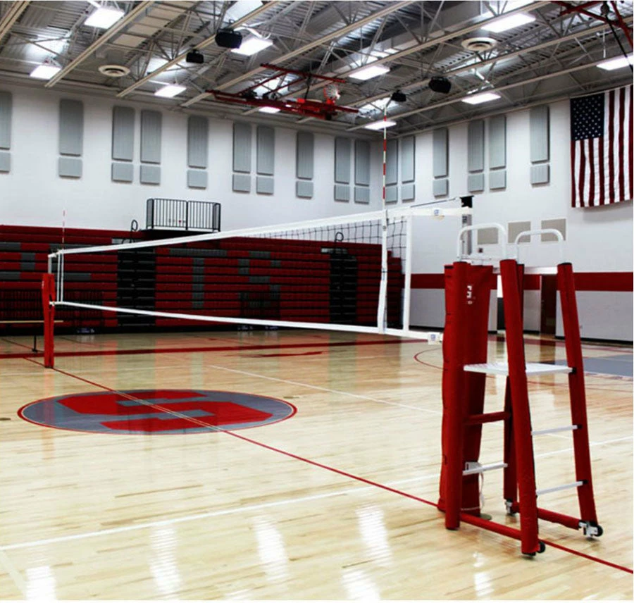 The 6100 one-court system features 3 1/2″ telescopic padded aluminum uprights for easy view of net for referee. Our competition net, sideline markers and antennas are easily set by sliding collar and pin-lock mechanism integrated into upright to athlete play level and tightening handled winch.