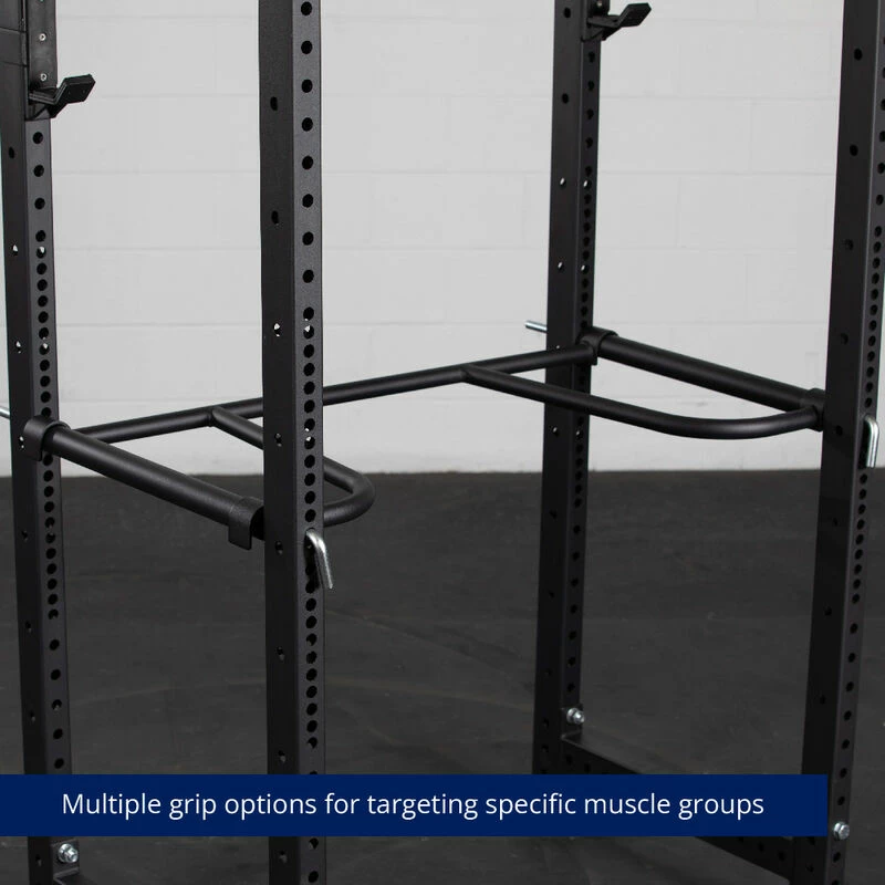 The X-Dip Bar Attachment will transform your T-3 or X-3 Series Power Racks into a fully adjustable dip station. Designed to clip onto your Pin and Pipe Safety Set easily. No hardware required. The 32 mm grip bar can hold up to 440-pounds and is a great way to build strength in your chest, shoulders, and arms. This versatile, multi-purpose attachment covers a wide variety of exercises including, standard dips, kipping dips, or raise the X-Dip to the top of the uprights for a multi-grip pull-up station. If bodyweight is not enough, try holding a dumbbell between your legs to add more weight and resistance to your dip exercise.