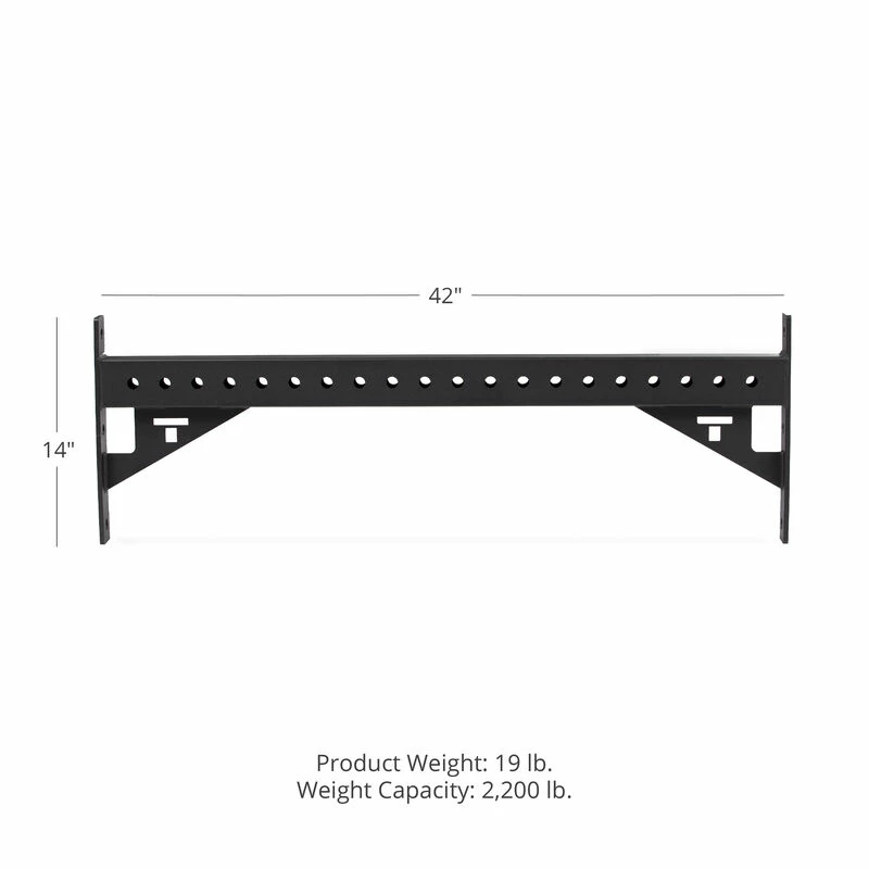 The T-3 Series Crossmember with Gussets by Titan Fitness® mounts on the top front or back of your T-3 Series Power Racks, constructed from heavy-duty 2 x 3-inch 11-gauge square steel with 2-inch hole spacing spanning the length of the 42-inch stabilizer bar. The Gusset Plates, welded to the stabilizer bar, feature laser-cut TITAN “T” logos improves the strength and stability of your Power Rack and allows you to add new workout stations, including Pull-Up Spheres, Shackles, Clock Hangs, and more.
