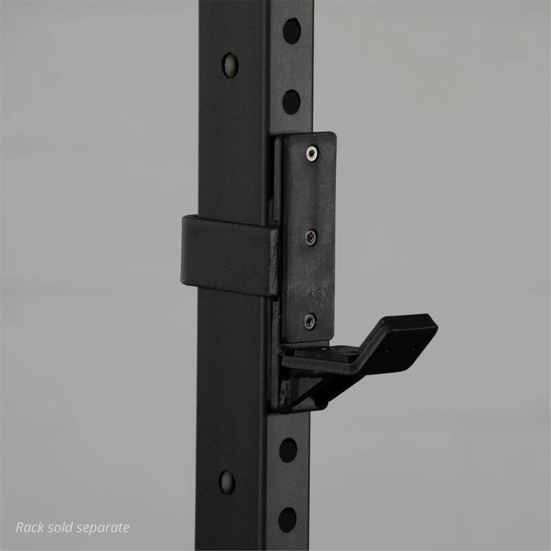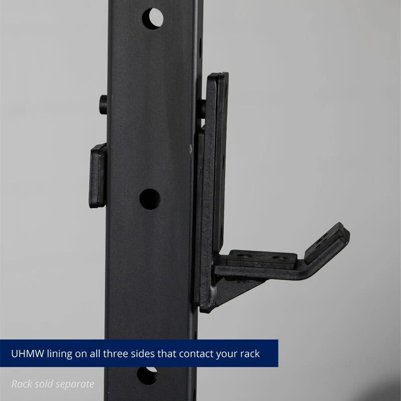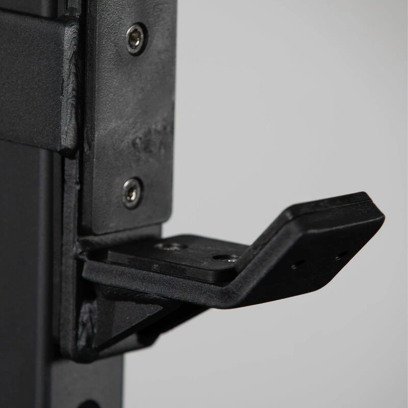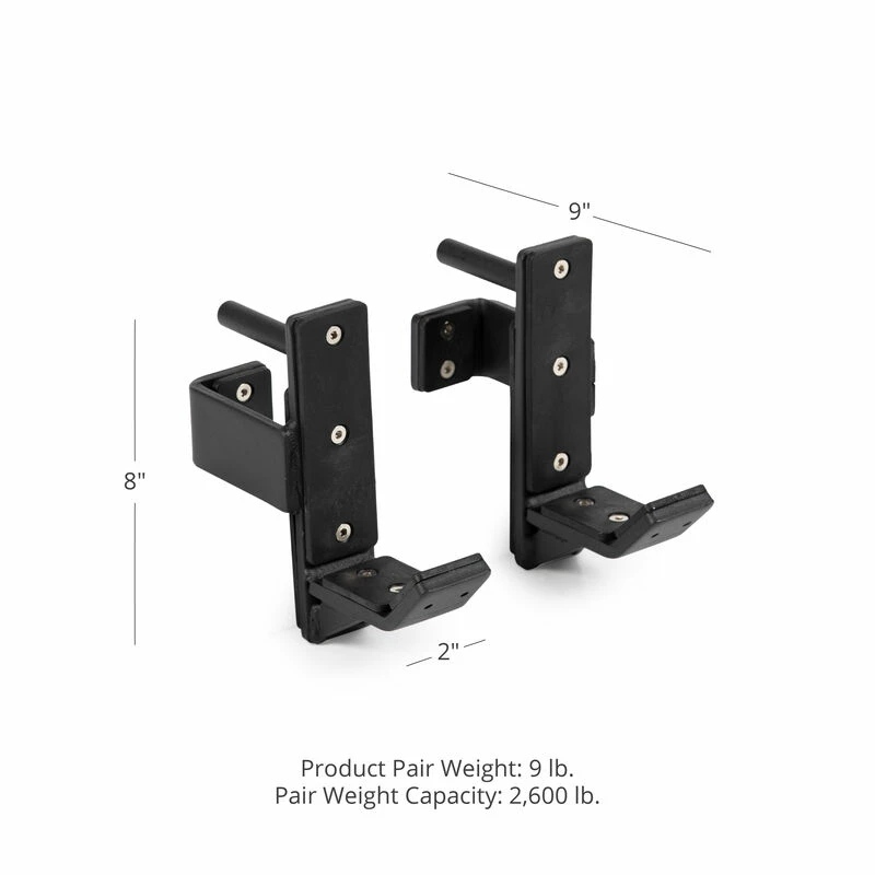The T-3 Series J-Hooks by Titan Fitness® are designed with a J-hook style mounting system that allows you to install the hooks to your rack within seconds. Easily clip the mounting system into the uprights by inserting the pin and rotating the hooks down. No hardware required. The two 2-inch-wide hooks can hold up to a combined 2,600-pounds and feature a UHMW plastic core on the backplate, lip, and frame, helping preserve your bar’s knurling and rack from being damaged. Elevate your workouts and overall safety with the T-3 Series J-Hooks!