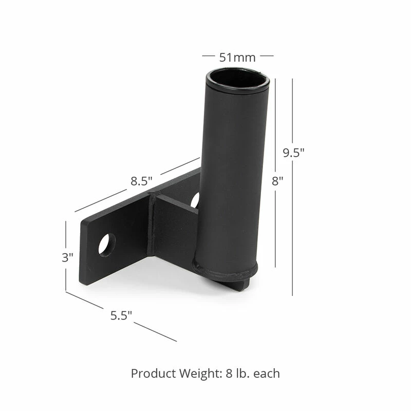 This pair of Barbell Holders feature a horizontal bolt-on bar holder that mounts directly on the exterior of your TITAN Series Power Rack. Installation is quick and easy, with a streamlined two-bolt design. This convenient barbell holder will store your favorite Olympic-sized bar into the bar holder’s 8-inch-tall seamless steel tube, protecting the knurling of your bar by only holding the sleeve keeping your equipment fully upright and safely stored.