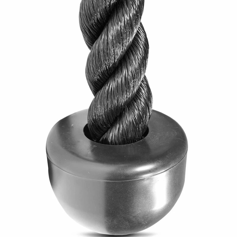 Titan Fitness aims to help you expand the usefulness of your home gym or pulldown machine with our line of lat pulldown attachments! If you want to develop your back muscles, shoulders, biceps, and more, this is the tool for you. This pulldown exercise rope is made with high-quality nylon and has a shiny black finish, textured grip surfaces, and a hanger in the middle for attaching to the hook or carabiner on your pulldown machine. Each end of the rope is firmly attached to a rubber cap, so your hands will not slip off in the middle of a workout. This rope is fully equipped with textured surfaces for safe and targeted grip positions. Use it to perform various lateral exercises to work out your triceps, back, biceps, shoulders, and more!
